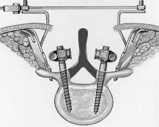 Кроме того, выполнение ламинэктомии всегда должно заканчиваться транспедикулярной фиксацией в соответствии с рекомендациями зарубежных исследователей. В противном случае у пациента обычно развивается нестабильность, что приводит к болям в поясничном отделе позвоночника. Транспедикулярная фиксация при выполнении декомпрессии из мини доступа проводится чрескожно, т.е. через разрезы длиной около 2см.