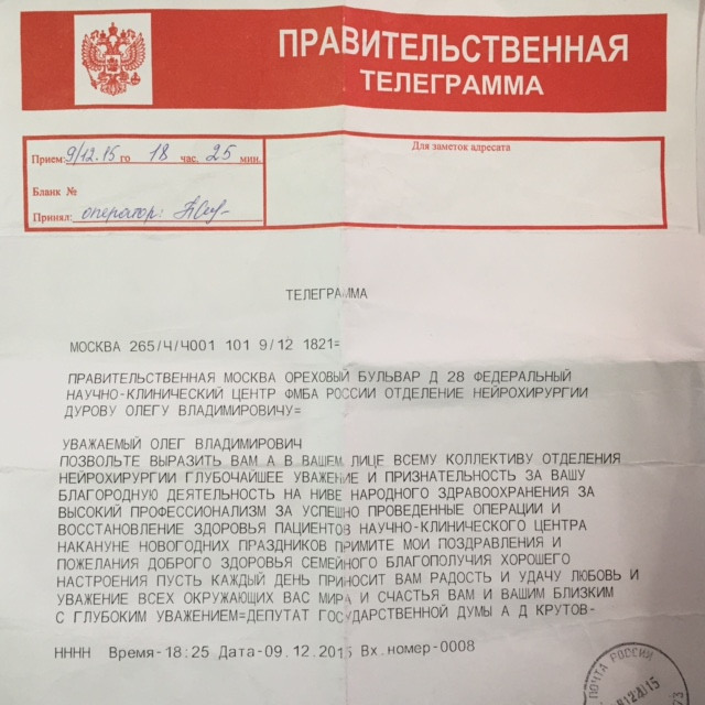 Милые и дорогие нейрохирурги! Олег Владимирович!
